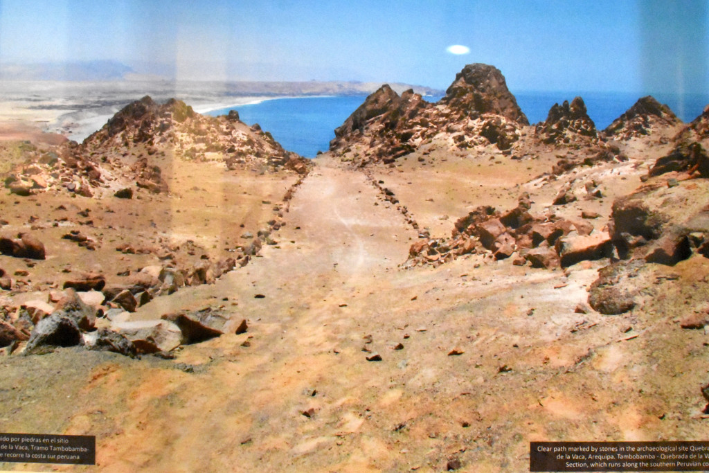 31 fotografii ukazuje ogrom i piękno Szlaku Inków. Podziwiać można spektakularne krajobrazy, takie jak Ollantaytambo, Święta Dolina Inków w Urubambie (Cusco), czy Acllawasi na stanowisku archeologicznym Aypate, gdzie szlak przecina strukturę i łączy ją z innymi ośrodkami regionu Piura. Na innych zdjęciach widzimy stanowiska archeologiczne, m.in. Huaycán de Cieneguilla czy El Huarco z murem wykonanym z imperialnej inkaskiej zabudowy kamiennej.