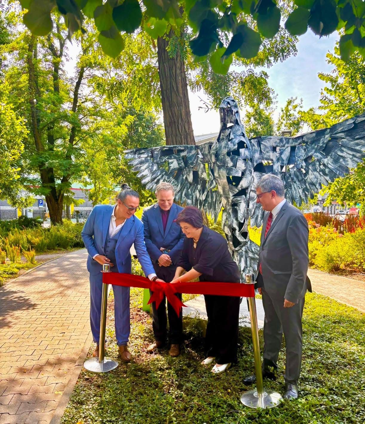 On August 28, 2025, the city of Łódź(Poland) became the stage for the unveiling of the sculpture “Emissary of Global Peace”, created by a Costa Rican artist Jessica Cheng using recycled metal — a poetic gesture of memory, transformation, and shared hope.