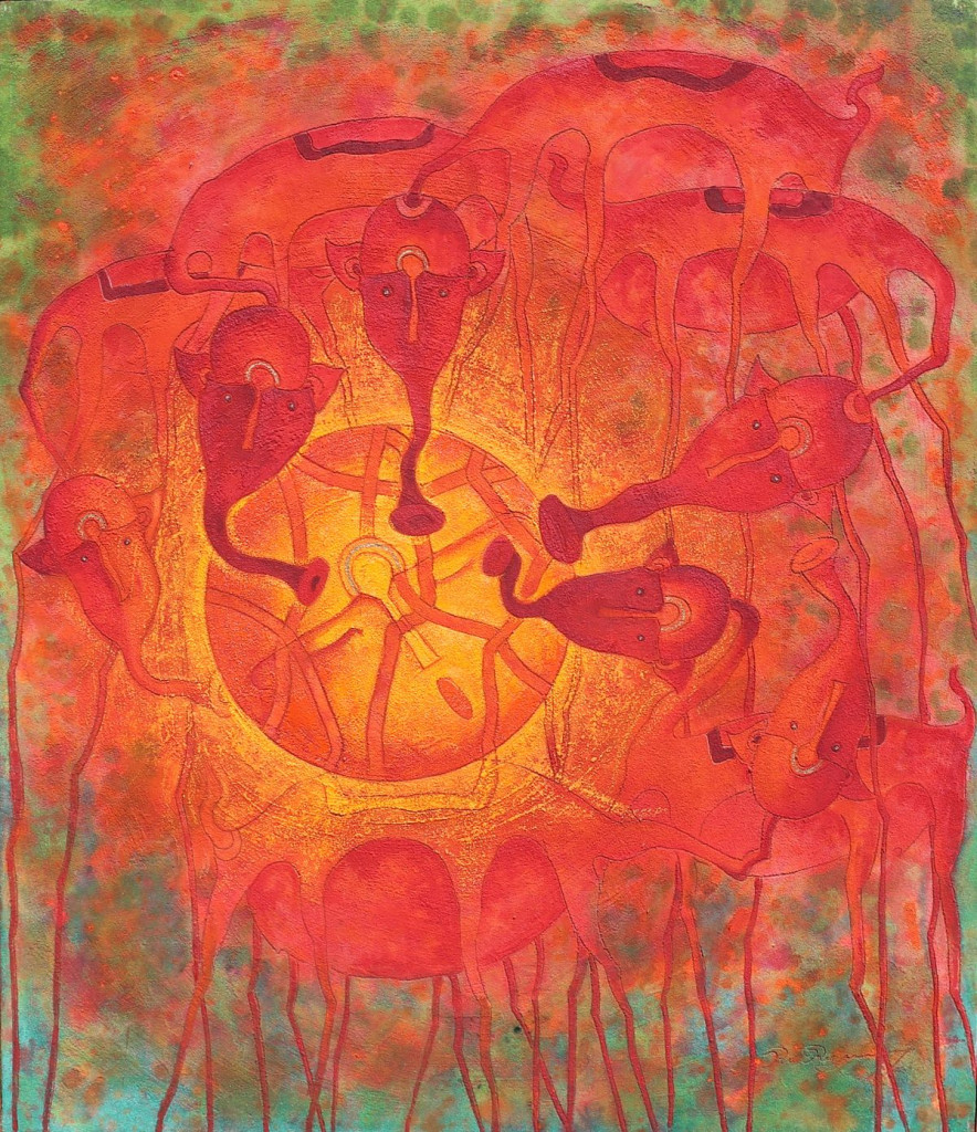 En la obra de Rojas, la naturaleza, el mito y las emociones se entrelazan en un diálogo vibrante que expresa la vitalidad del arte contemporáneo mexicano. A través del color y la imaginación, el artista aborda temas universales como la fertilidad, la sensualidad y la simbología cósmica.